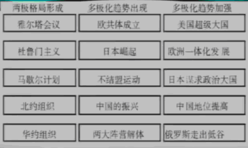 2、表现:美国成为唯一的超级大国,力主建立单极格局,独霸世界;1993年欧盟的成立,大大提高了其国际地位;日本、俄罗斯、中国等多个政治力量不断发张壮大;世界格局呈现“一超多强”的局面,多极化趋势进一步发展。