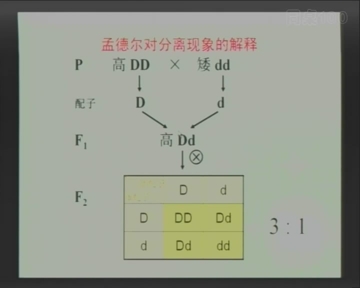 3、生物体在形成生殖细胞——配子时,成对的遗传因子彼此分离;分布进入不同的配子中(配子中只含每对遗传因子的一个)