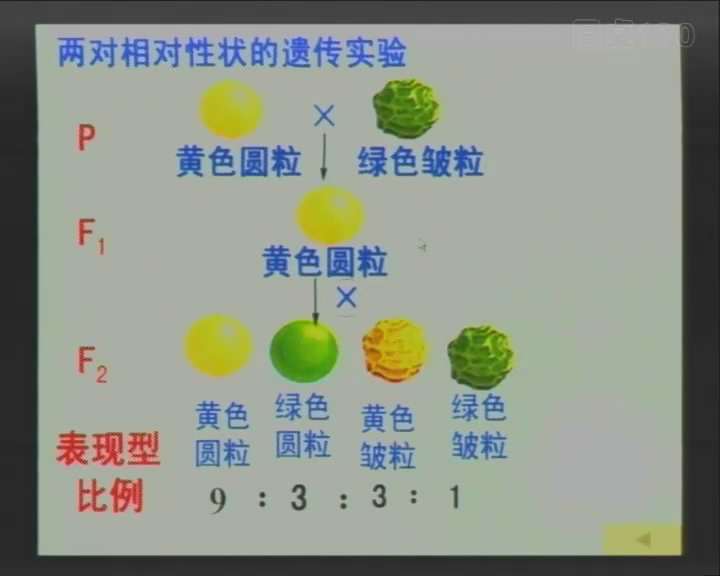 ①双显性占9/16,但显性(绿圆、黄皱)各占3/16,双隐性占1/16