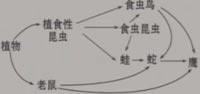 (3)蛇和鹰同时捕食老鼠和食虫鸟,两者为竞争关系;同时鹰又捕食蛇,两者又为捕食关系。