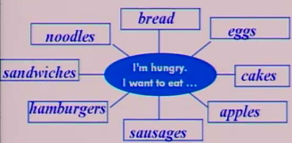 同学们,你们能以最快的速度说出你们想吃的食物吗?越多越好哦!