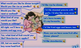 的食物时,可以用I'd like...来回答。如果后面跟一种食物时,也可以用