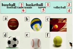 Listen and number the sports as you hear them.