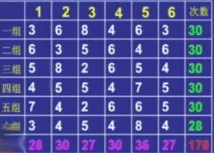 探究 有一质地均匀的骰子,骰子的六个面上分别刻有1到6的点数,每组投掷30此,统计朝上面的点数填入下表。
