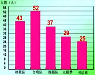 | 项目 | 秧歌队 | 合唱队 | 舞蹈队 | 太极拳 | 书法班 |