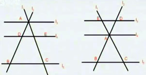 (平行于三角形一边的直线截其它两边所得的对应线段成比例)
