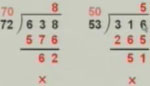 四年级数学上册第五章《收获的季节——除数是两位数的除法》四舍法和五入法试商对比的笔算除法