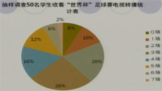 在“世界杯”足球赛闭幕后,时代中学学生会对本校七年级学生收看比赛电视实况转播的情况用随机抽样方式进行调查,样本容量是50,将数据分组整理后,列出下表: