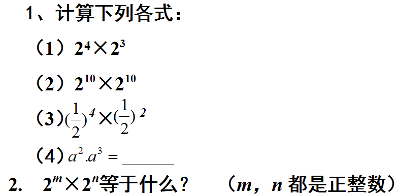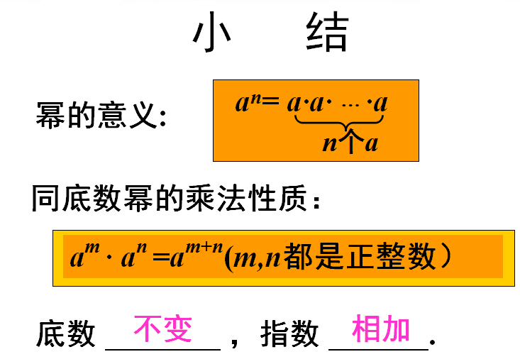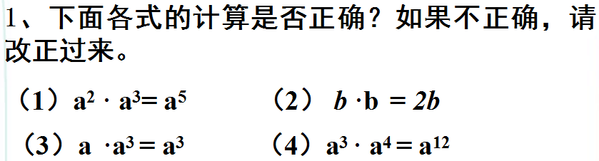 通过上面的练习你认为同底数幂的乘法法则的应用应注意什么?