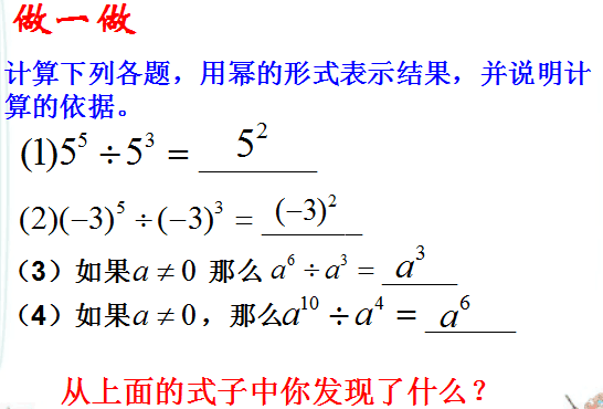 七年级数学下册第八章《整式的乘法》8.3 同底数幂的除法