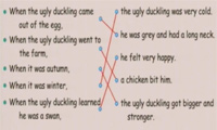 The three ducklings often play together.They are happy.The ugly duckling is sad and lonely.