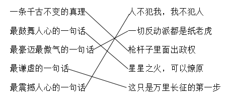 3.本文作者毛泽东是中华人民共和国的缔造者,伟大的无产阶级革命家、军事家、思想家、诗人,他的许多经典语言哲理深刻,广为流传。下面是毛泽东流传较广的几句话,请将它们连线。