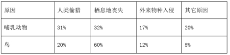 4.研究显示了哺乳动物和鸟类濒危或受威胁的原因,由该研究来看,鸟类濒危或受威胁的主要原因是( )