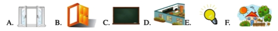 ( )(1)door ( )(2)picture ( )(3)light ( )(4)classroom ( )(5)window ( )(6) blackboard