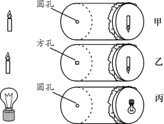 2.学习了光学知识后,爱动脑筋的小桐和小朵想自己探究小孔成像现象。如图所示,她们给两个空罐的底部中央分别打上一个圆孔和一个方孔,再用两片半透明的塑料膜蒙在空罐的口上,分别将小孔对着烛焰和灯丝,可以看到烛焰和灯丝通过小孔所成的像。