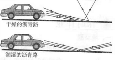4.如图是晚上汽车在干燥的沥青路面和潮湿的沥青路面上行驶时大灯部分光路简图,在晚上开车时( )