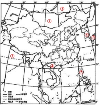 (5)请在图中用字母a标出你家乡所在省区的位置。