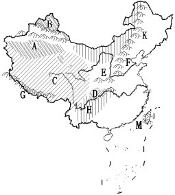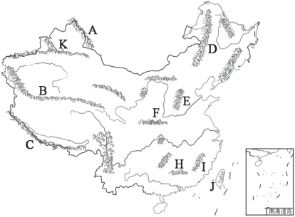 (1)将图中字母代号所代表的地形区名称,分别填在相应的空格内。