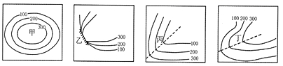 (3)在等高线地形图中,还可以识别山峰、山谷、山脊、鞍部和陡崖等常见的地形部位。甲代表的地形部位为________;虚线丁处代表的地形部位为________,该地形部位的等高线特点是:等高线弯曲部分向________(高或低)处凸出。