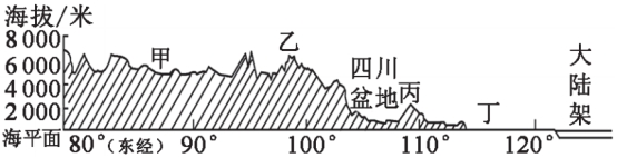 读我国北纬 32°地形剖面示意图,完成9~10题。