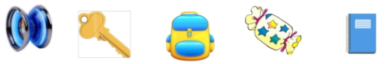 1、A.door B.schoolbag C.candy D.key E.classroom F.notebook G.blackboard H.window I.light J.toy
