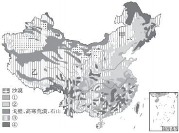 (2)甲地位于________(地形区),乙地位于________(地形区),这两地主要的土地利用类型③是________。