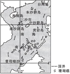 三沙市是我国最年轻的地级市,隶属海南省,也是我国纬度最低的城市,下辖西沙群岛、南沙群岛、中沙群岛的岛礁及其海域。长期以来,水资源短缺是困扰三沙市发展的重要问题,近年来三沙市采取了一些措施,这一现状才有所改善。下图为三沙市位置示意图。读图,完成7~8题。
