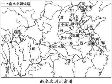 (1)“南水北调”西线方案是把长江上游的A________、B________和C________的水引入黄河,以解决西北地区的缺水问题。