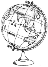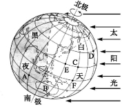 演示地球自转时,用手电筒模拟太阳,拨动地球仪(如下图)。读图,完成第7~8题。