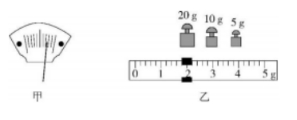 2.在利用托盘天平测量一石块质量的过程中,将天平放在水平桌面上后,应将游码移至左端处,如果发现指针如图甲所示,则应向(选填“左”或“右”)移动。按照正确的操作,最终天平平衡时,砝码与游码如图乙所示,则被测石块的质量为g。