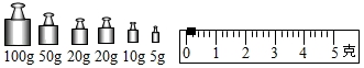 1.托盘天平是一种精密测量仪器,某实验室天平的配套砝码及横梁标尺如图。