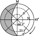 南北纬66.5°是出现极昼极夜现象的最低纬度,所以把这两条纬线称为极圈,