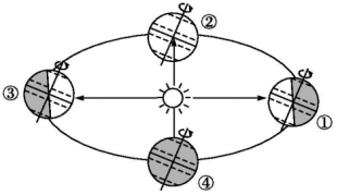 地球在公转时,地轴总是倾斜的,且空间指向不变。