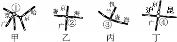 4.下列序号表示的铁路枢纽站城市,正确的是()
