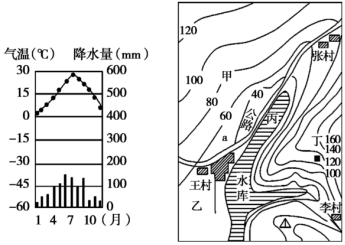 下图为我国某地的气候和地形图,此地距某大城市仅5千米。根据图中信息,完成8~9题。