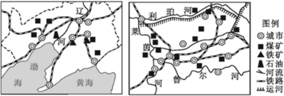 读“中国辽中南工业区图和德国鲁尔区图”(下图),完成3~5题。