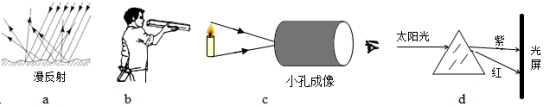 D. 图d表示太阳光经过三棱镜色散后的色光排列情况。