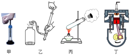 D.图丁:汽缸内的气体推动活塞向下运动,内能转化为机械能,气体内能减少