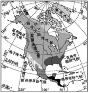 读北美洲气候类型分布图,完成5~6题。