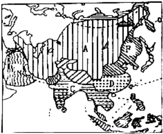 1.读亚洲气候类型图,回答问题。
