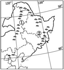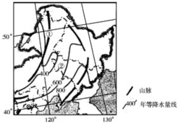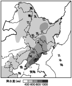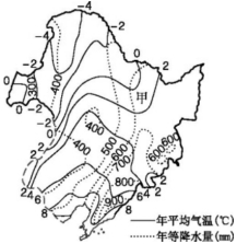 读“东北地区年降水量和年平均气温分布图”,完成4~5题。