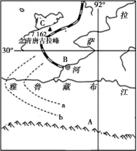 (1)青藏地区位于我国________部,A________山脉——B________山脉以南,C________山脉以西,南至国界。