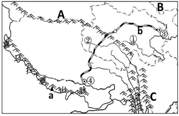 (3)2006年7月1日,世界上海拔最高、线路最长的高原铁路——________铁路全线通车,该铁路自城市③________出发,终点是城市④________。