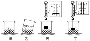 (2)在弹簧测力计下悬挂一个铝块,弹簧测力计示数是4.0N。然后,将铝块慢慢浸入水中,当铝块部分浸入水中,弹簧测力计示数如图丙所示,弹簧测力计示数是N;当铝块全部浸没在水中,弹簧测力计示数如图丁所示,此时铝块受到浮力大小是N。实验结果表明:铝块浸在水中的体积越大,受到浮力越大。