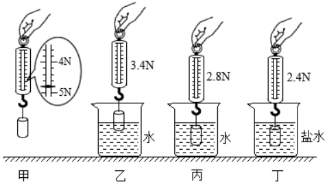 2.弹簧测力计通过细线吊着一个金属块,静止时弹簧测力计的示数如图甲所示,则金属块的重力是N。如图乙所示,将金属块浸没在水中,静止时弹簧测力计的示数是1.6N。则金属块在水中受到的浮力是N。