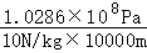 p海水=p﹣p大气压=1.0296×10⁸Pa﹣1×10⁵Pa=1.0286×10⁸Pa,