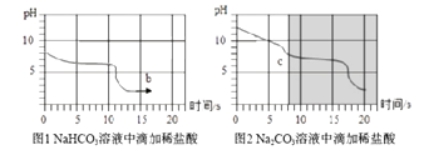 4.向等体积含等碳原子数的碳酸氢钠和碳酸钠溶液中,分别逐滴加入一定浓度的盐酸,得到pH 变化与时间的关系如图1、图2所示,将图1与图2的阴影部分进行叠加,两者基本重合。下列说法正确的是( )