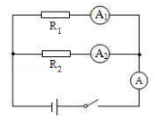 3.如图所示,在探究“并联电路的电流规律”时,闭合开关S后,电流表A₁的示数是0.1A,电流表A₂的示数是0.3A,则电流表A的示数是( )