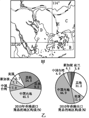 (4)香港是国际经济贸易中心,其主导产业是________,据图乙判断其最大的转口贸易伙伴是________。