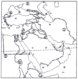 2.中东有“三洲五海之地”之称,其中“三洲”指( )。